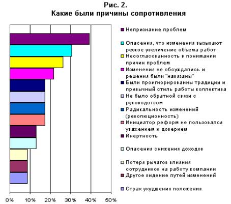 Сопротивление организационным изменениям как проблема организационного развития [oбзорная статья] Материалы III-й Конференции СПб Клуба консультантов и тренеров "Как создать и продвигать новый тренинг или бизнес-семинар" Автор: , (г. Таганрог) Сопротивление организационным изменениям является одной из основных проблем, стоящих перед развивающейся организацией. 1.Подходы к анализу сопротивлений Сегодня организации для выживания на рынке и сохранения конкурентоспособности должны непрерывно изменяться и вносить изменения в свою деятельность. В наиболее общем виде в современной социологии организаций описывается как процесс позитивных качественных изменений в организации, затрагивающий способы, средства деятельности и взаимодействия людей и отражающийся в трансформации организационной структуры [7]. При осуществлении организационных изменений неизбежно возникает сопротивление изменениям. Сопротивление организационным изменениям является одной из основных проблем стоящей перед развивающейся организацией. Анализ литературы показал, что сопротивления организационным изменениям в основном рассматриваются в контексте различных концепций организационного развития. Ансофф под сопротивлением понимает многогранное явление, вызывающее непредвиденные отсрочки, дополнительные расходы и нестабильность процесса изменений. Это сопротивление проявляется всегда в ответ на любые изменения. В процессе изменений имеют место отсрочки начала процесса изменений; непредвиденные отсрочки внедрения и прочие трудности, которые замедляют изменения и увеличивают расходы по сравнению с запланированными; попытки саботировать изменения внутри организации или «утопить» их в потоке других первоочередных дел. [1] С точки зрения исследователя стратегии, сопротивление является проявлением иррационального поведения организации, отказа признать новые черты реальности, размышлять логически и реализовывать на практике выводы логического мышления. С точки зрения наук о поведении сопротивление представляет из себя естественное проявление различных психологических установок в отношении рациональности, согласно которым группы и отдельные индивиды взаимодействуют друг с другом. [1]. Описывая такое явление как сопротивление, исследователи часто останавливаются на выделении видов и причин его возникновения, а также на разработке методов его преодоления. 2.Анализ и классификация причин и видов сопротивлений Описывая сопротивления переменам, прежде всего, выделяют 2 вида сопротивления в зависимости от его силы и интенсивности: пассивное и активное. Пассивное сопротивление - форма более или менее скрытого неприятия перемен, выражающегося в виде снижения производительности или желания перейти на другую работу. Активное сопротивление форма открытого выступления против перестройки (например, в виде забастовки, явного уклонения от внедрения новшеств). Одной из первых и наиболее распространенных классификаций причин сопротивлений является классификация Коттер и Шлезингер. Они выделяют четыре причины сопротивления изменениям [6]: Узкособственнический интерес. Желание не потерять что-то ценное: положение, власть, материальную выгоду, комфорт, привычную обстановку, политическое преимущество и неформальные связи. Непонимание и недос